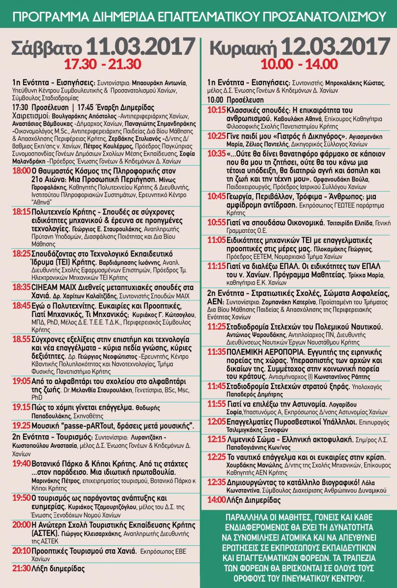 11-12 Μαρ 2017 η Διημερίδα Επαγγελματικού Προσανατολισμού Χανίων στο Πνευματικό Κέντρο