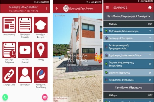 Ιδιαίτερα σημαντικό είναι πως η εξαιρετική σε σχεδιασμό και λειτουργικότητα εφαρμογή κινητών αναπτύχθηκε αποκλειστικά από φοιτητές του τμήματος Διοίκησης Επιχειρήσεων Αγίου Νικολάου στα πλαίσια της πτυχιακής τους εργασίας, γεγονός που αποδεικνύει το υψηλό επίπεδο σπουδών του τμήματος σε νέες τεχνολογίες Πληροφορικής. Η εφαρμογή έχει σκοπό την προώθηση του τμήματος σε υποψήφιους φοιτητές και την εξυπηρέτηση των μελών του τμήματος.