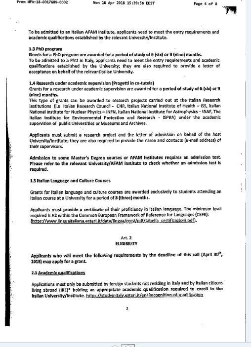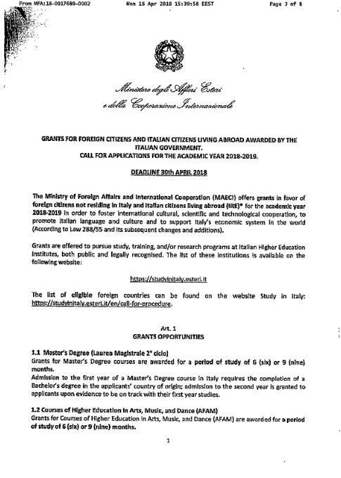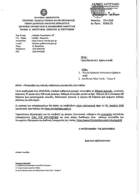 25/4/2018 ΥΠΟΤΡΟΦΙΕΣ ΙΤΑΛΙΚΗΣ ΚΥΒΕΡΝΗΣΗΣ ΓΙΑ ΣΠΟΥΔΕΣ ΣΤΗΝ ΙΤΑΛΙΑ